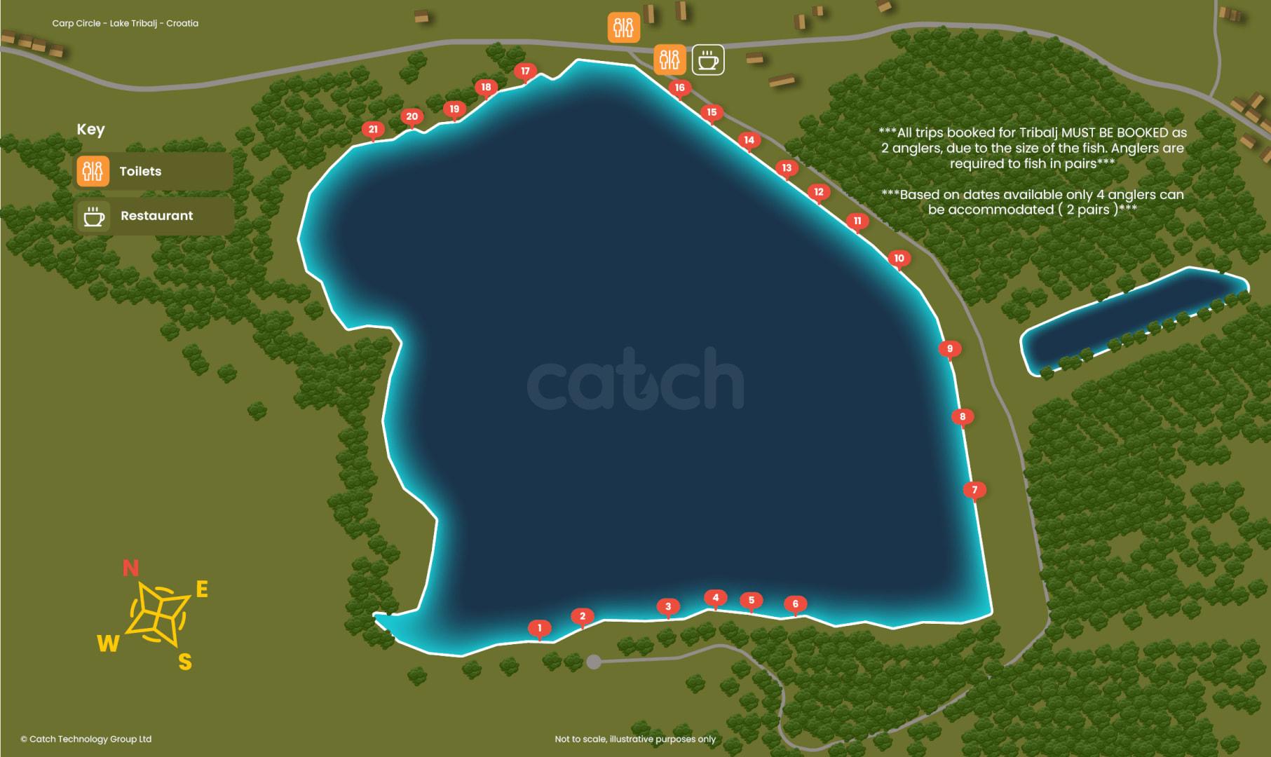 Na jezeru Tribalj nalazi se 21 mjesto za ribolov.